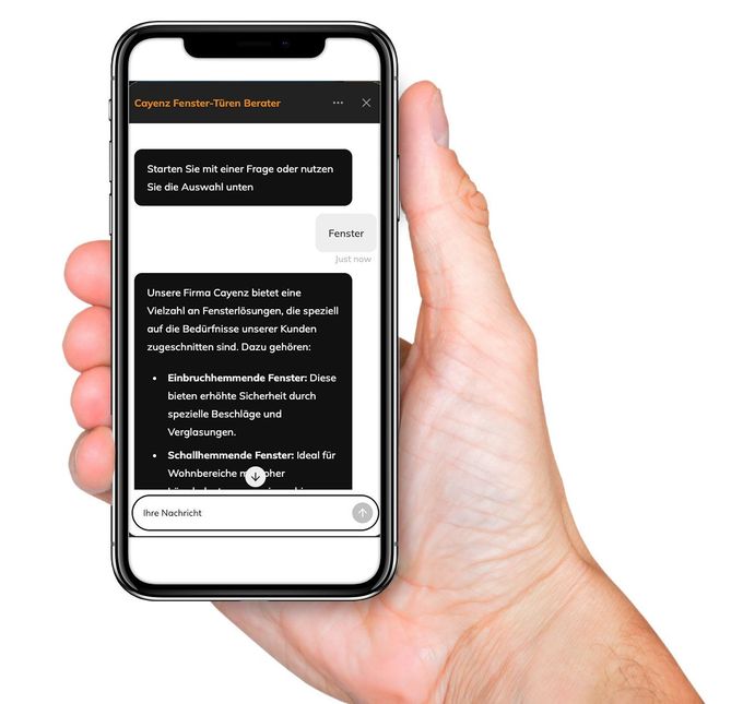 Wer konkret werden möchte, bekommt im Chat den direkten Link zur Anfrage bei Cayenz.